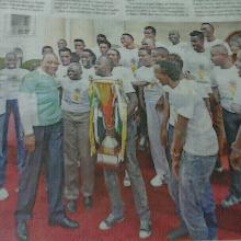 Posted Image President Uhuru Kenyatta shares a light moment with KPL league winners Gor Mahia State House Nairobi